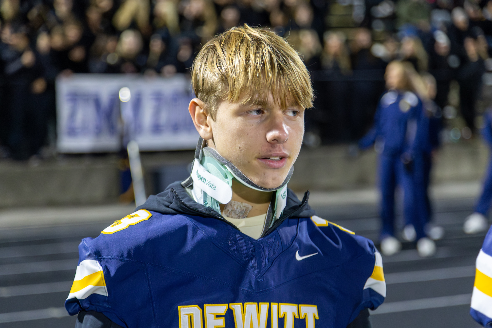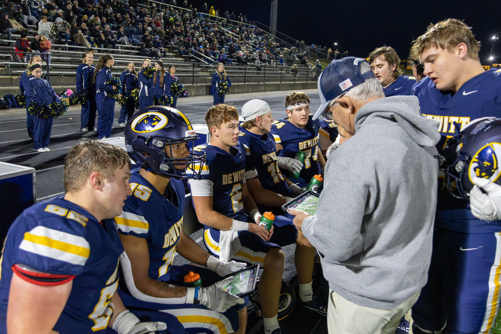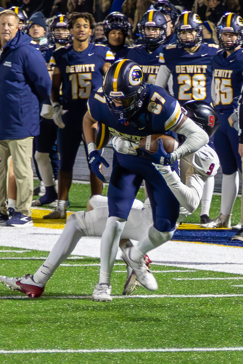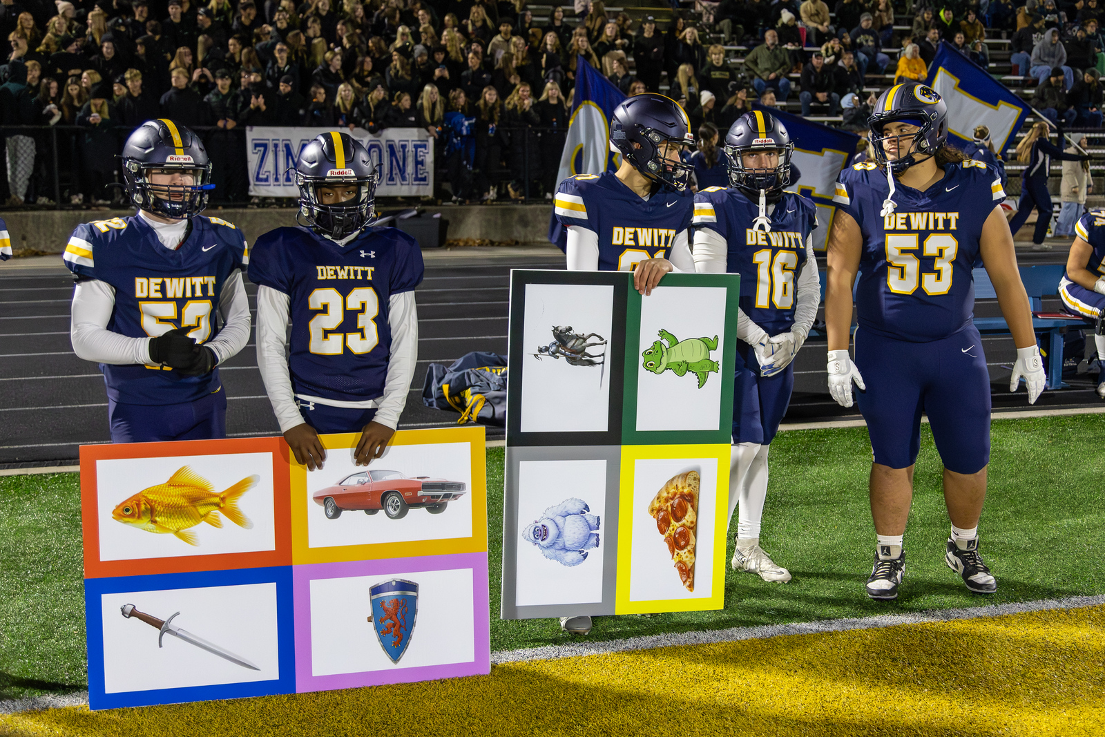 DeWitt, MI(11/10/2025): Friday evening the DeWitt Panthers will host the Fenton Tigers for the regional championship game. The winner of this game will play the winner of Warren De La Salle Collegiate and Detroit Martin Luther King for a Division 3 Semi-Final appearance to be played at a neutral site. Weather, dry and 40s. Fenton is 8-3 on the season and champions of the Flint Metro League - Stripes division. If that sounds familiar, Linden is in the same division. Fenton defeated Linden a month ago in 46-41. The three losses were to playoff teams. They lost to Midland Dow (10-1) in week one 38-6 and lost to Haslett (8-3) 15-14 in week two. They also lost to Goodrich (11-0) for the Metro League Championship 21-20. Goodrich beat 9-1 Chelsea last week in their district final. Last Friday night, Fenton trounced a good 9-1 Adrian team 35-7 for their district title. This will be the second meeting all time between the two schools, as DeWitt defeated Fenton in the 2023 distrtct playoffs. The two teams have two common opponents this season, Linden and Haslett. As mentioned, Fenton lost to Haslett in week two and beat Linden week seven in a wild one, 46-41. Fenton is coached by Jeff Setske and is in his 14th successful season. He is 109-36 and 13 playoff appearances and only one losing season in 2021.Overall, Fenton has been to the playoffs 24 times in program history. Remember the '24 DeWitt team with Elliott Larner at QB and twin brother Abram at receiver? Fast forward to this year. Same situation for Fenton, Noah Sheil and Rory Sheil, twin seniors. Noah is 6-1 and 195lbs QB with a smooth delivery on passes whether a screen pass (that they run a lot) or a dart 20 yards down field or a 50 heave. Last we saw he is 90 of 170 passing for over 1,500 yards, 15 TDs (We have a hunch is it more than that) and only 3 interceptions. He can sling it side arm for a screen pass, throw long or throw well on the run. His primary target will be twin brother Rory. Looks a lot like Abram (same #4) running pass routes and is fast and they will throw the fade route to the corner of the endzone. When Noah gets pushed from the pocket, he seems to know right where Rory is. They run the spread with single back in the back field. Sheil has four excellent receivers to choose from, reminiscent of the DeWitt 2002 receivers of Wiliams, Way, Holland and Lloyd. Fenton has Rory Sheil, Landon Becker, Landry LaFontaine and Nathan Fuller. All with great hands and speed. And all possess the ability for yards after catch. In the backfield with Sheil will be Lafontaine and Cruz Gomez. He is a very strong guy although not tall at 5'9" and will make arm tackles never happen. Gomez will be hard to find behind his big front five blockers. A couple of them is Owen Raymond at 6-2 and 275lbs can probably move a pick up truck. And to move a trailer hooked to the truck is Tommy Chanter at 6-3 and 275. Both have good footwork and can blast block or get out on a screen pass and block down field. Did we mention they will throw a number screen passes? Max Wolfgram is just a little guy at 6-4 230lbs and is a beast especially on the D line. They do have many more very good players, but after seeing these highlights, we did not want to see any more. Friday night is going to be a heck of a ball game between Tigers and Panthers. Did we mention that? DeWitt, MI(11/07/2025): Friday evening, the DeWitt Panthers defeated the Linden Eagles 45-0 for the Division 3, Region 3 District 1 Championship. We turned the rain off mid-day so it will be dry with temperatures in the lower 50 headed to the mid-40s. Perfect early November evening for football. Linden took the opening kick off and did muster one first down. Their strategy was run the play clock down to a second or two before snapping the ball to slow the game down. They punted to DeWitt and the Panthers took over at the DeWitt 40. The Panthers started by grinding it out, smash mouth football, three yards and a cloud of dust (now it is 4.2 yards and a rug burn). Running this way and that way and some ways we could not follow at times, DeWitt went 60 yards in 13 plays and finished with sophomore Channing Ridley twisting and turning and bouncing off Eagles for a 15 yard touchdown. Vincent Rose did his usual thing with the extra point. 7-0 DeWitt. On the kickoff, Casey Flannery put a lick on the Eagle returner and caused a fumble that Parker Makela jumped on and set the table for the Panther offense with a short field. That led to a Rose 40 yard field goal, his fifth field goal of the season and third 40 yarder. Linden again slowed the game trying to limit the number of possessions for the DeWitt offense and took 11 plays to move 52 yards but turned it over on downs at the Panther 28. The Panther front five started to open up holes in the Linden front eight and in 4 plays DeWitt scored Moore on a 57 yard run by Trav. About eight Linden tacklers, a couple coaches and the water boy had shots on Trav but he bounced off all of them and sprinted the last 30 yards for the score. Rose. Again the defense forced a punt. Linden had trouble running up the middle with a trio of line backers, Everett Cooper, Cooper Chambers and Noah Deneen. Ok, we'll throw Lucas Brandell and Brendan Mensing in there as well, shutting down the run game of Linden. Meanwhile the Panther secondary was batting passes away like mosquitoes on a hot summer evening. DeWitt went 64 yards in 7 plays with Moore scoring one more on a 31 yard run. Rose. 24-0 DeWitt with 3:30 to play in the half. Following a poor Linden punt, DeWitt drove 27 yards to the 6 yard line. Linden Linebacker Landon Jones stepped in front of a Moore to Jacob Schorfhaar pass in the end zone and brought it out to the 15. Linden took a knee and it was 24-0 at the half. Linden kicked off the second half and as expected attempted an onside kick. Miller Wing pounced on it at the DeWitt 36. First play from scrimmage, Moore added another score by running 64 yards. That made the Linde