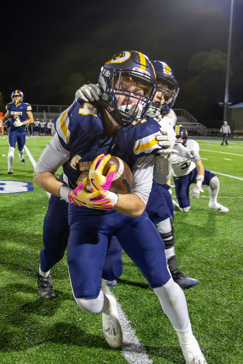 DeWitt, MI(11/04/2025): This Friday evening, the DeWitt Panthers will host the Linden Eagles for the Division 3, Region District 1 Championship. Kickoff is scheduled for 7:00pm. We are planning to turn the rain off mid-day so it will be dry with temperatures in the lower 50 headed to the mid-40s. And, remember it will be dark on your way to the game so be extra cautious in and around the parking lots. But, just in case we don't get the rain turned all the way off... wear your rain gear. Linden is part of the Flint Metro League Stripes division. They finished the season 3-2 in the league, losing to champ Fenton and Flushing. Overall they are 7-3 with a non league loss to Chelsea and non league wins over Harrison Township L'Anse Creuse and Corunna and Lake Fenton in a Metro League Crossover game. DeWitt and Linden have one foe in common and that is Mason. Last Friday, Linden defeated Mason 35-24 and DeWitt defeated Mason 44-37 in week two. This is the 4th consecutive season Linden has been in the playoffs and have been in the playoffs 20 of last 26 yars but has not yet been able to achieve a regional championship. Fenton and Holly are their two biggest opponents over the years with playing each of them 52 times. The Eagles and Panthers have played 9 times with DeWitt winning eight of those games. They have run into the Orchard Lake St. Mary's a number of times in the past dozen years that have ended their season, we know what that is like. In 1998, the Panthers and Eagles first met as a non-league contest with Linden edging DeWitt 31-28 and in 2014 , '15, '16 and '17 in a non-league situation. The other four games were in the playoffs. Linden is coached by Chad Williams in his 4th season as head coach and has a 23-20 record. He took over from long time coach Denny Hopkins. His offense is as diverse as any DeWitt will see this season, primarily four wide outs and a single back next to an outstanding QB but will also send two long and keep everyone in for blocking. Sophomore QB Max Winder, 6-0, 185lbs, is 115 of 191 for 1,778 yards and 16 TDs heading into the Mason game. He has a strong arm and very accurate from 50 yards, but does not carry the ball. That chore rests with senior Andrew Maienbrook. He is quick getting through the large line up front and when he breaks the hole, he has speed to burn and good moves. He has run for 17 TDs this season and 702 yards. Winder has a threat with wideout Aiden Moore. At 5-10 165 lbs, he is fast running the go route and has 41 receptions for 998 yards for a whopping 25 yards per catch average and 10 touchdowns. Defensively, middle linebacker Fischer Mlinarich averages 14 tackles per game. Not a big linebacker at 5-11 and 170lbs but is quick to the ball and sideline to sideline is one of the best DeWitt will see this season. He is flanked by linebacker Gabe Walter who has 73 tackles on the season. As a team, Linden averages 427 yards per game and 41 points per game, while giving up 236 points for an average of 24.They have hit 60 points once this season and 5 times over 40. Last week, they were down 14-0 to Mason in the first quarter then turned up the physicality as six Bulldog players were taken off the field with injuries. DeWitt, MI(11/4/2025): Last Friday evening the DeWitt Panthers defeated the Owosso Trojans 70-13 in the Division 3, Region 3 District 1 Pre-District game. The Full Throttle Panther defense set the table early for DeWitt. The second play of the game, Max Strawn picked off a Liam Patrick pass at the Owosso 28. Panther QB Trav Moore hit Jadon Bender for the 28 yard TD pass. Vincent Rose made the first of his 10 extra points to make the score 7-0 with 11:36 left in the first quarter. The first play of the next Trojan series Lucas Brandell intercepted Patrick and returned it for a TD. Rose. Then next drive by Owosso, the defense made the Trojans punt and Patrick picked up a fumbled return at the Owosso 11. Bender set the table for the Panther offense by returning a punt 37 yards to the Owosso 23. Moore took the second down play for 20 yard TD run. Rose. Landon Kurncz took the next Owosso punt for 55 yards for a TD and the field seemed very tilted for DeWitt. Finally Patrick seemed to "flip the field" and punted to the Panther 4 yard line. Channing Ridley for his only run of the night for 18 went to the Panther 22, Caeden Martin-Seymour ran for 4 yards, Tyler Bayshore for 8 then Moore scoring when Moore took it 66 yards for the TD. 35-0 DeWitt at the end of the first quarter. Owosso snuck Evan Hunter behind the DeWitt secondary for a 80 yard TD pass early in the second quarter. Braden Reed made the extra point, 35-7 DeWitt. The Panthers scored four TDs in the second quarter, an interception "pick six" for Brandell, his second of the night, an interception pick six for Bender and one Moore TD for Trav on an 82 yard run. Griffin Braman capped a 97 yard drive two play drive with a 92 yard run. At the half 63-7 DeWitt. In the third quarter, Donovan Hillard rushed three times for 66 yards during a 90 yard four play drive capping the Panther scoring with a 22 yard TD run. Patrick connected with Reed for Owosso late in the game for make the final 70-13. The defense had four interceptions, three for pick sixes, two by Brandell, one for Bender and a "regular" interception by Strawn. Strawn also had a batted pass as did Noah Deneen and Hudson Snellilng. Cooper Chambers and Everett Cooper each had a sack and Trevor Preston had four tackles as did Tegun Thompson and Braylon. Wright-Moore. Moore led the Panthers offensively with 180 yards rushing on 4 carries and 3 TDs. Braman had a 92 yard carry for a score and Hillard 71 yards and a score. Moore was 3 of 3 passing for 46 yards and one TD. Braman was one of one passing for 24 yards to Cato Johnson. Game Stats Drive Stats Score Stats Next up, the Linden Eagles Friday night for the district championship.