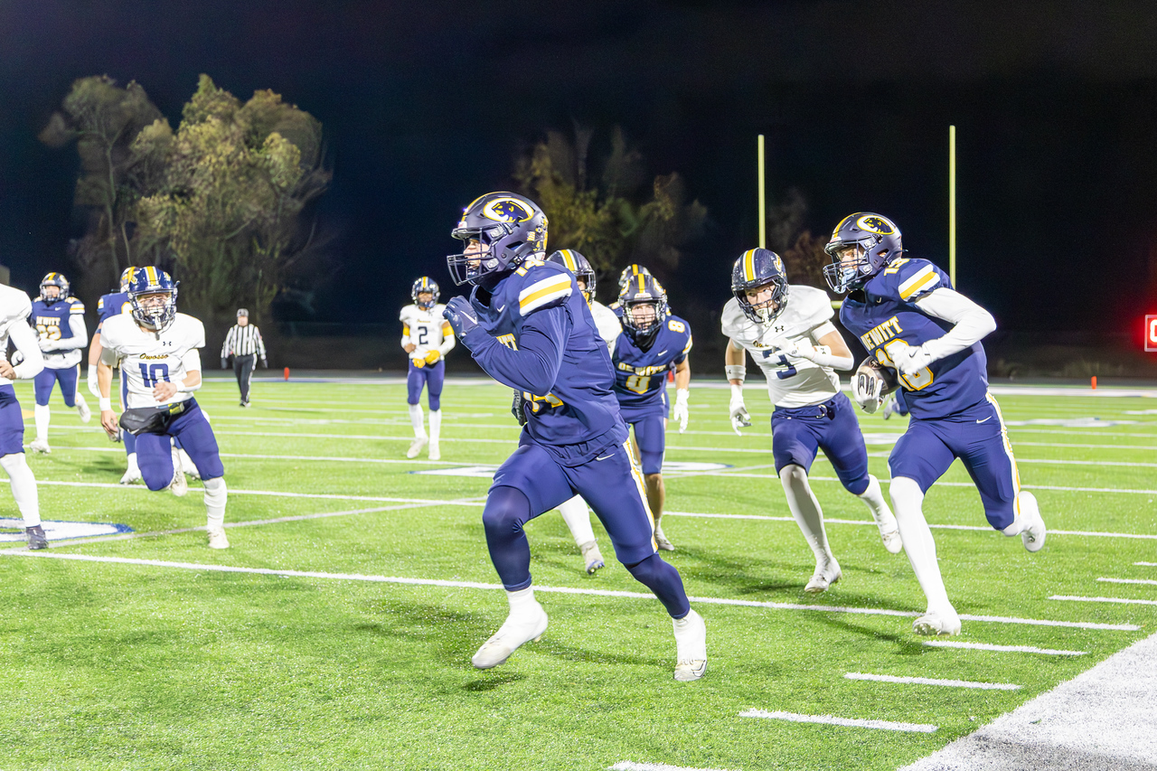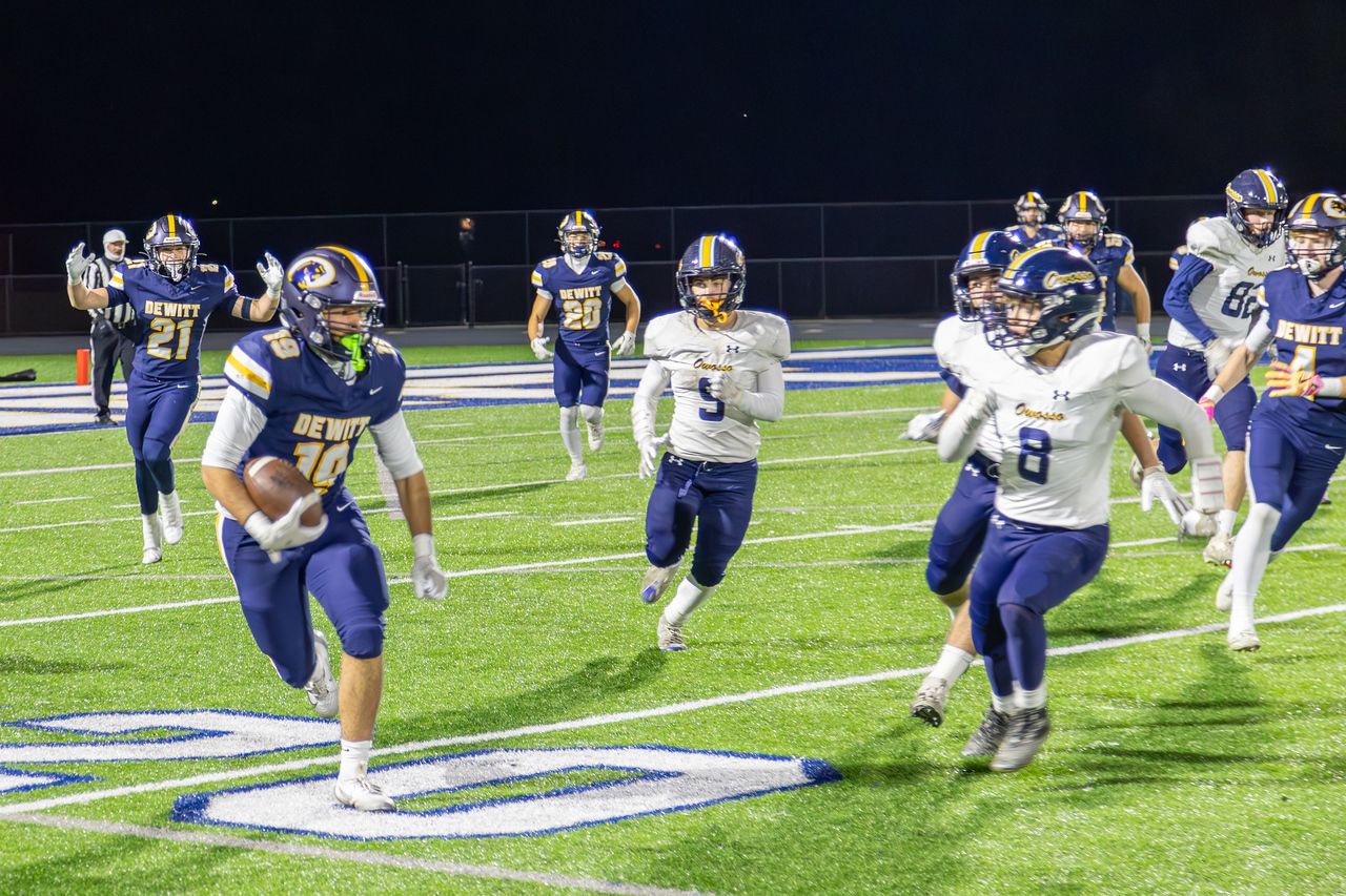 DeWitt, MI(11/04/2025): This Friday evening, the DeWitt Panthers will host the Linden Eagles for the Division 3, Region District 1 Championship. Kickoff is scheduled for 7:00pm. We are planning to turn the rain off mid-day so it will be dry with temperatures in the lower 50 headed to the mid-40s. And, remember it will be dark on your way to the game so be extra cautious in and around the parking lots. But, just in case we don't get the rain turned all the way off... wear your rain gear. Linden is part of the Flint Metro League Stripes division. They finished the season 3-2 in the league, losing to champ Fenton and Flushing. Overall they are 7-3 with a non league loss to Chelsea and non league wins over Harrison Township L'Anse Creuse and Corunna and Lake Fenton in a Metro League Crossover game. DeWitt and Linden have one foe in common and that is Mason. Last Friday, Linden defeated Mason 35-24 and DeWitt defeated Mason 44-37 in week two. This is the 4th consecutive season Linden has been in the playoffs and have been in the playoffs 20 of last 26 yars but has not yet been able to achieve a regional championship. Fenton and Holly are their two biggest opponents over the years with playing each of them 52 times. The Eagles and Panthers have played 9 times with DeWitt winning eight of those games. They have run into the Orchard Lake St. Mary's a number of times in the past dozen years that have ended their season, we know what that is like. In 1998, the Panthers and Eagles first met as a non-league contest with Linden edging DeWitt 31-28 and in 2014 , '15, '16 and '17 in a non-league situation. The other four games were in the playoffs. Linden is coached by Chad Williams in his 4th season as head coach and has a 23-20 record. He took over from long time coach Denny Hopkins. His offense is as diverse as any DeWitt will see this season, primarily four wide outs and a single back next to an outstanding QB but will also send two long and keep everyone in for blocking. Sophomore QB Max Winder, 6-0, 185lbs, is 115 of 191 for 1,778 yards and 16 TDs heading into the Mason game. He has a strong arm and very accurate from 50 yards, but does not carry the ball. That chore rests with senior Andrew Maienbrook. He is quick getting through the large line up front and when he breaks the hole, he has speed to burn and good moves. He has run for 17 TDs this season and 702 yards. Winder has a threat with wideout Aiden Moore. At 5-10 165 lbs, he is fast running the go route and has 41 receptions for 998 yards for a whopping 25 yards per catch average and 10 touchdowns. Defensively, middle linebacker Fischer Mlinarich averages 14 tackles per game. Not a big linebacker at 5-11 and 170lbs but is quick to the ball and sideline to sideline is one of the best DeWitt will see this season. He is flanked by linebacker Gabe Walter who has 73 tackles on the season. As a team, Linden averages 427 yards per game and 41 points per game, while giving up 236 points for an average of 24.They have hit 60 points once this season and 5 times over 40. Last week, they were down 14-0 to Mason in the first quarter then turned up the physicality as six Bulldog players were taken off the field with injuries. DeWitt, MI(11/4/2025): Last Friday evening the DeWitt Panthers defeated the Owosso Trojans 70-13 in the Division 3, Region 3 District 1 Pre-District game. The Full Throttle Panther defense set the table early for DeWitt. The second play of the game, Max Strawn picked off a Liam Patrick pass at the Owosso 28. Panther QB Trav Moore hit Jadon Bender for the 28 yard TD pass. Vincent Rose made the first of his 10 extra points to make the score 7-0 with 11:36 left in the first quarter. The first play of the next Trojan series Lucas Brandell intercepted Patrick and returned it for a TD. Rose. Then next drive by Owosso, the defense made the Trojans punt and Patrick picked up a fumbled return at the Owosso 11. Bender set the table for the Panther offense by returning a punt 37 yards to the Owosso 23. Moore took the second down play for 20 yard TD run. Rose. Landon Kurncz took the next Owosso punt for 55 yards for a TD and the field seemed very tilted for DeWitt. Finally Patrick seemed to "flip the field" and punted to the Panther 4 yard line. Channing Ridley for his only run of the night for 18 went to the Panther 22, Caeden Martin-Seymour ran for 4 yards, Tyler Bayshore for 8 then Moore scoring when Moore took it 66 yards for the TD. 35-0 DeWitt at the end of the first quarter. Owosso snuck Evan Hunter behind the DeWitt secondary for a 80 yard TD pass early in the second quarter. Braden Reed made the extra point, 35-7 DeWitt. The Panthers scored four TDs in the second quarter, an interception "pick six" for Brandell, his second of the night, an interception pick six for Bender and one Moore TD for Trav on an 82 yard run. Griffin Braman capped a 97 yard drive two play drive with a 92 yard run. At the half 63-7 DeWitt. In the third quarter, Donovan Hillard rushed three times for 66 yards during a 90 yard four play drive capping the Panther scoring with a 22 yard TD run. Patrick connected with Reed for Owosso late in the game for make the final 70-13. The defense had four interceptions, three for pick sixes, two by Brandell, one for Bender and a "regular" interception by Strawn. Strawn also had a batted pass as did Noah Deneen and Hudson Snellilng. Cooper Chambers and Everett Cooper each had a sack and Trevor Preston had four tackles as did Tegun Thompson and Braylon. Wright-Moore. Moore led the Panthers offensively with 180 yards rushing on 4 carries and 3 TDs. Braman had a 92 yard carry for a score and Hillard 71 yards and a score. Moore was 3 of 3 passing for 46 yards and one TD. Braman was one of one passing for 24 yards to Cato Johnson. Game Stats Drive Stats Score Stats Next up, the Linden Eagles Friday night for the district championship.